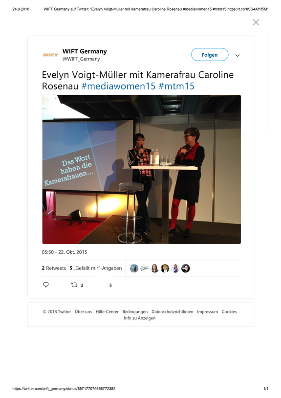 Ein Artikel im Blog vom BVFK zu unserem Vortrag Frauen hinter der Kamera auf dem Cine Congress in München