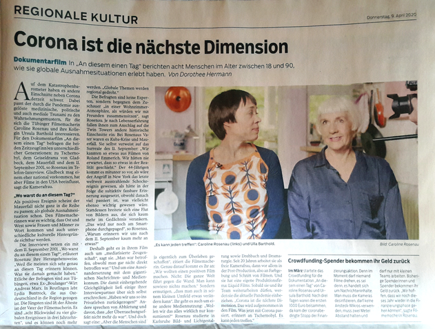Ein Artikel zum Dokumentarfilm AN DIESEM EINEN TAG erschien am Gründonnerstag im Schwäbischen Tagblatt.