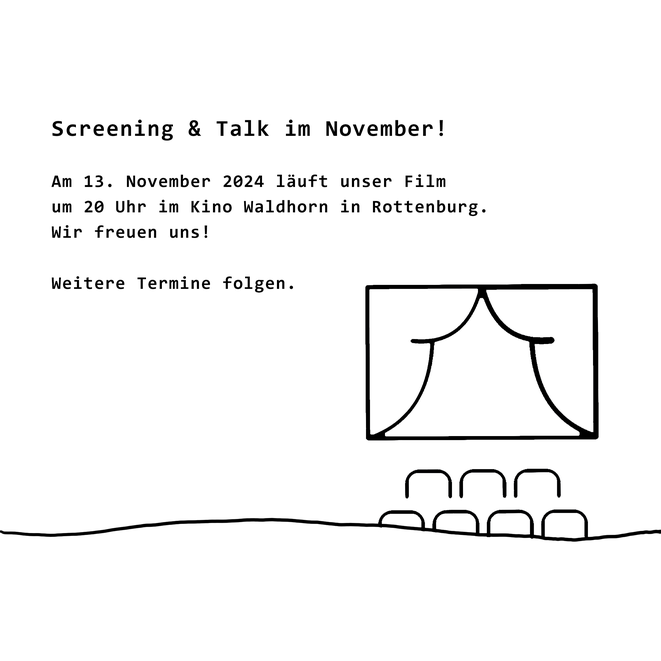 Am Mittwoch den 13.11.2024 könnt Ihr Euch unseren Dokumentarfilm mit anschließendem Gespräch im Kino Waldhorn in Rottenburg um 20 Uhr anschauen.