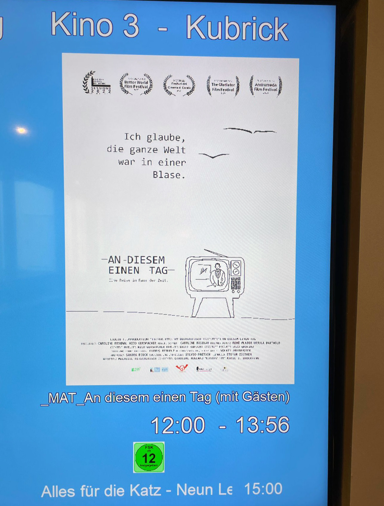 Unser Dokumentarfilm AN DIESEM EINEN TAG, war auch dieses Jahr noch auf Festivaltour daher freuen wir uns umso mehr, dass zu Beginn des Jahres und im Frühjahr dieser zwei Mal für Best Documentary ausgezeichnet wurde. Parallel haben wir uns sehr über das positive Feedback unseres Kinopublikums und die tollen und anregenden Gespräche dazu gefreut im Anschluss an unseren Filmvorführungen aber auch im Schulwesen.