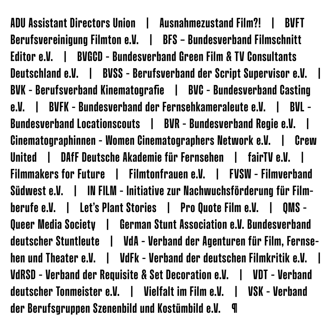 #film #tv #offenerbrief #filmbranche #tv #medienbranche #medienschaffende #misstände #sozialestandards #nachhaltigkeit #arbeitsschutz #honorare #gagen #filmproduktion #tvproduktion #filmförderung #kino #berufsverbände #medienschaffende