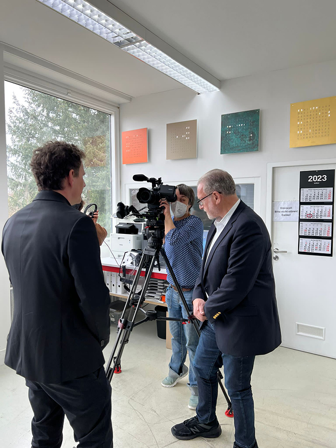 Dreharbeiten bei QLOCKTWO in Schwäbisch Gmünd